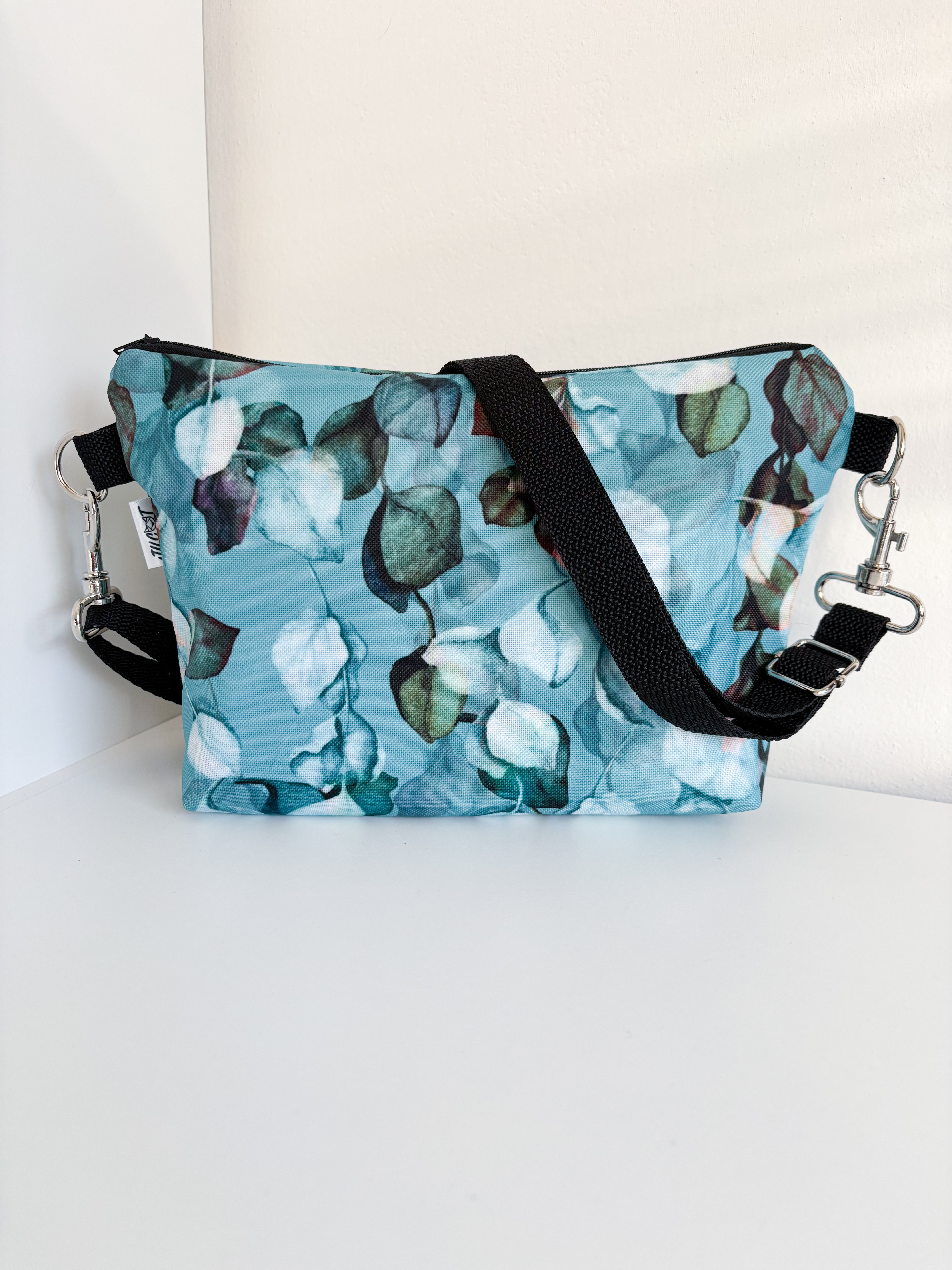 Ideální kabelka za zábavou, na svatbu nebo jen tak na procházku. Crossbody je ušité ze dvou vrstev látky (vnější část koženka, vnitřní část 100% bavlna). Díky rozšířenému dnu se sem vejde malá i velká peněženka a k tomu i klíče, kapesníčky, rtěnka a všechny drobnosti, které potřebujete mít u sebe. Nechybí ani malá kapsička na mobil. Zavírání je na zip. Součástí je popruh s nastavitelnou délkou, lze tedy nosit buď jako ledvinku na hrudníku a nebo jen volně přes rameno. Nejdelší nastavení popruhu má 140 cm a nejkratší 70 cm.