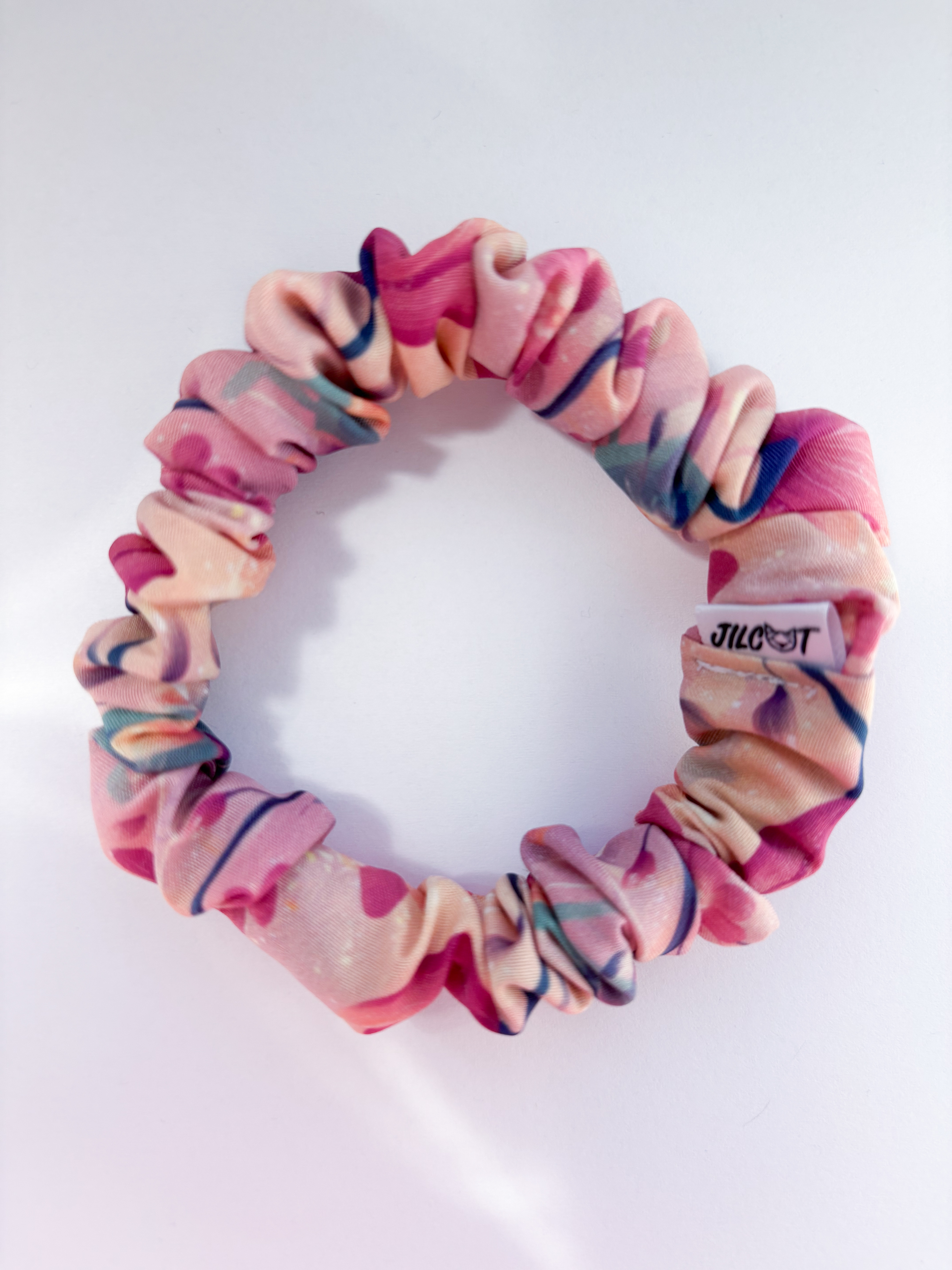Gumička umělé hedvábí tenká (růžové květiny)