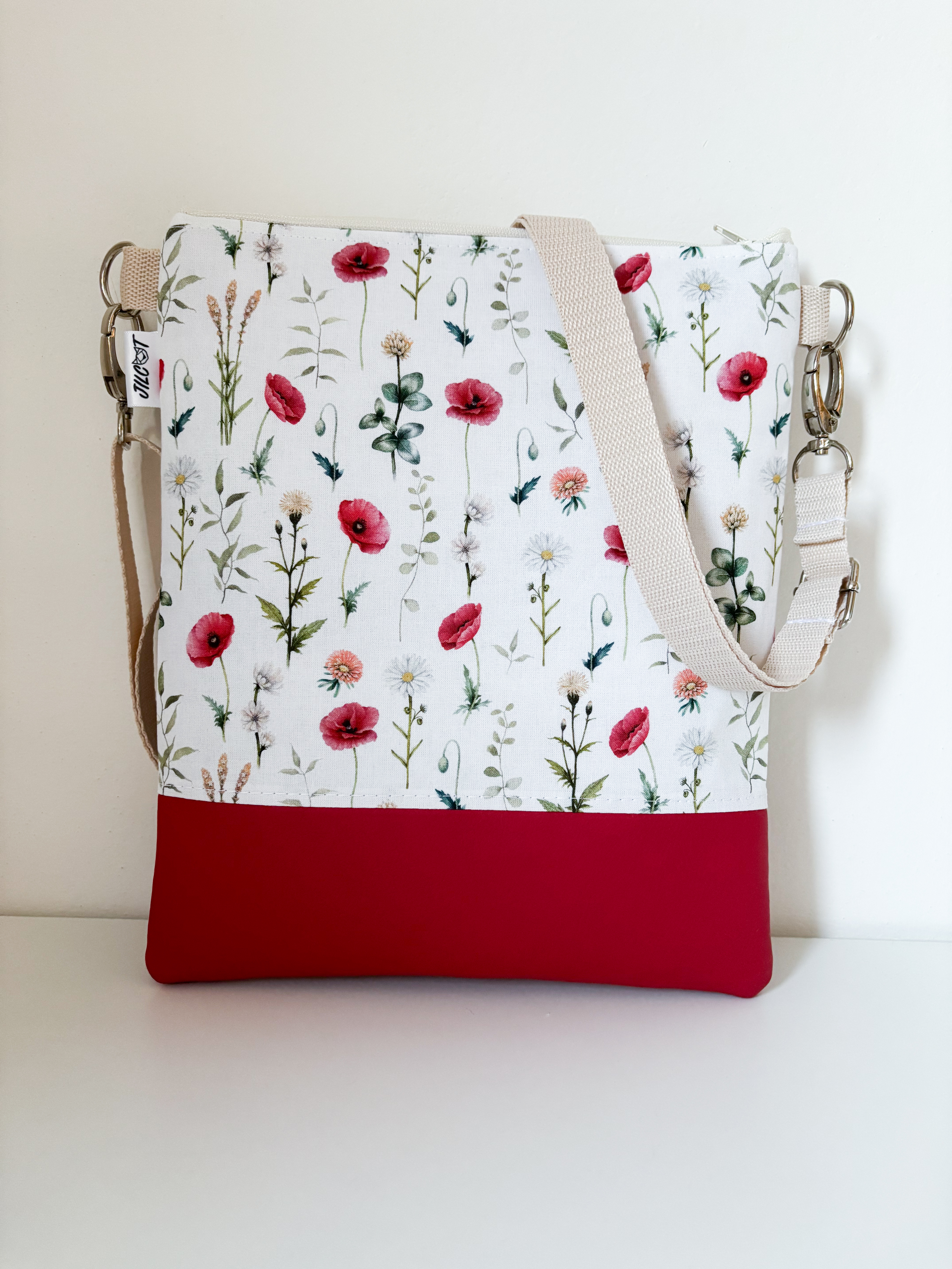 Jilcat crossbody (Vlčí máky + červená koženka)
