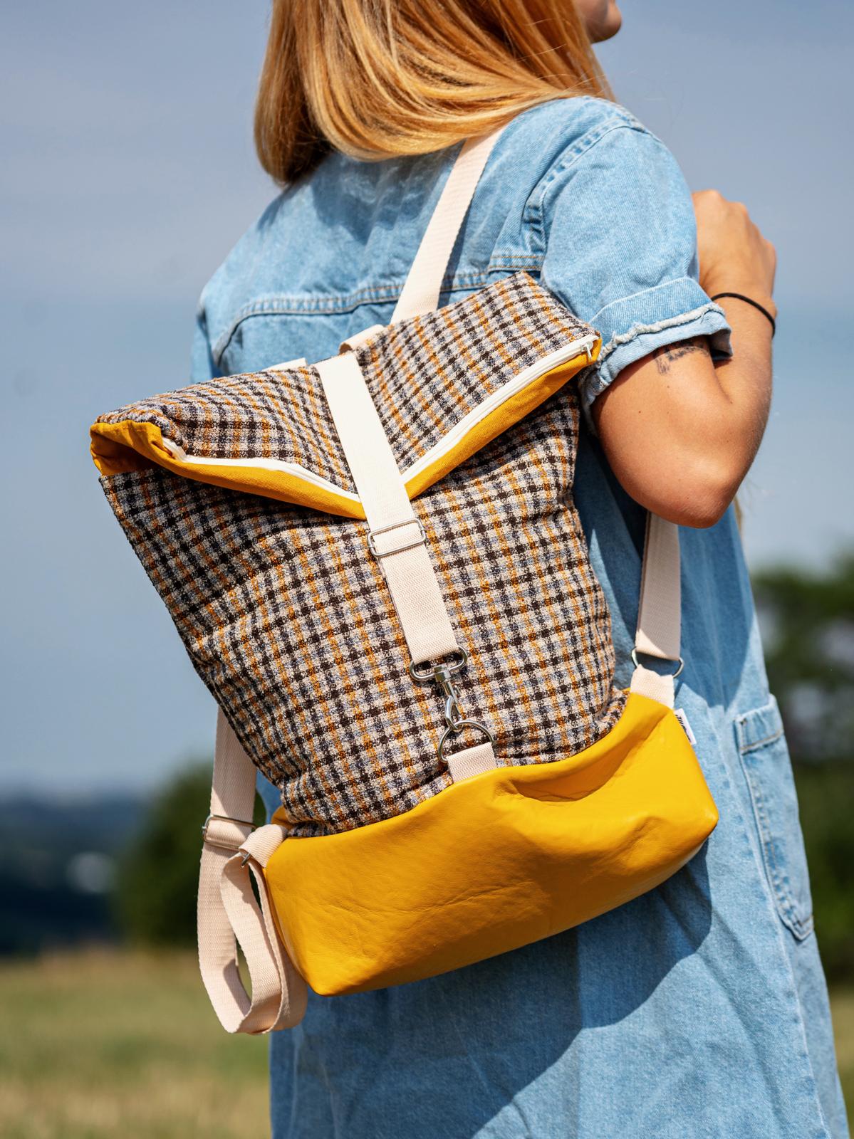 Všechny vnější vrstvy jsou podžehlené zpevňující látkou a batoh se dá uzavřít zipem.